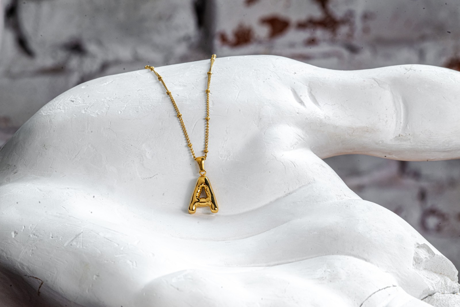 Un colier delicat, placat cu aur, cu un pandantiv elegant in forma de litera. Lantul subtire prezinta zale bine lucrate, armonios imbinate pentru un aspect rafinat. Pandantivul, cu o suprafata lucioasa si contururi precise, adauga un aer sofisticat. Dimensiunea lantului permite integrarea usoara in diverse stiluri, fie ca element central al unei tinute minimaliste, fie alaturi de alte bijuterii complementare. Un detaliu stilizat, potrivit pentru un look elegant si expresiv.