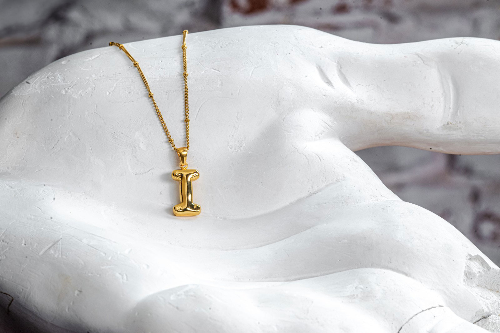 Un colier delicat, placat cu aur, cu un pandantiv elegant in forma de litera. Lantul subtire prezinta zale bine lucrate, armonios imbinate pentru un aspect rafinat. Pandantivul, cu o suprafata lucioasa si contururi precise, adauga un aer sofisticat. Dimensiunea lantului permite integrarea usoara in diverse stiluri, fie ca element central al unei tinute minimaliste, fie alaturi de alte bijuterii complementare. Un detaliu stilizat, potrivit pentru un look elegant si expresiv.
