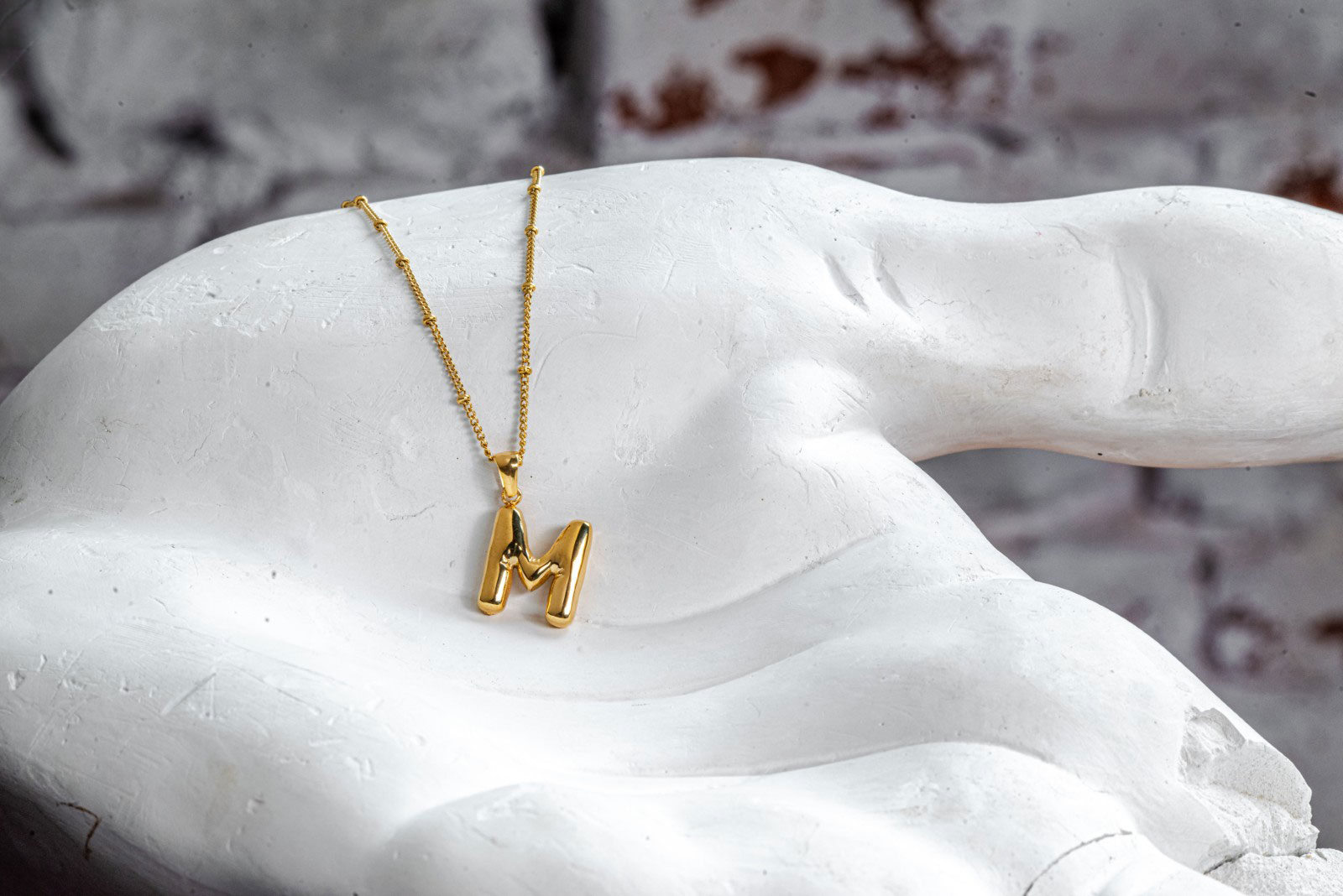 Un colier delicat, placat cu aur, cu un pandantiv elegant in forma de litera. Lantul subtire prezinta zale bine lucrate, armonios imbinate pentru un aspect rafinat. Pandantivul, cu o suprafata lucioasa si contururi precise, adauga un aer sofisticat. Dimensiunea lantului permite integrarea usoara in diverse stiluri, fie ca element central al unei tinute minimaliste, fie alaturi de alte bijuterii complementare. Un detaliu stilizat, potrivit pentru un look elegant si expresiv.