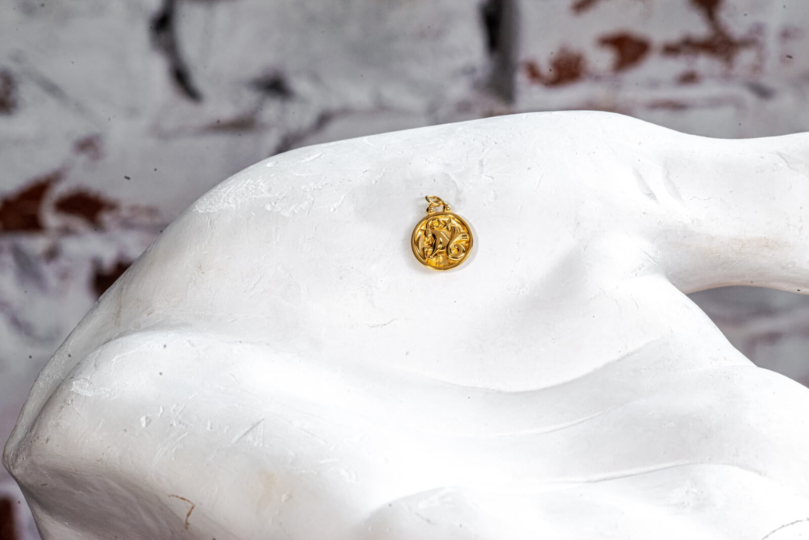 Pandantiv din otel inoxidabil placat cu aur Material: otel inoxidabil, zirconiu Placare: aur de 18K Dimensiune: 1.69 cm Greutate: 3.50 g