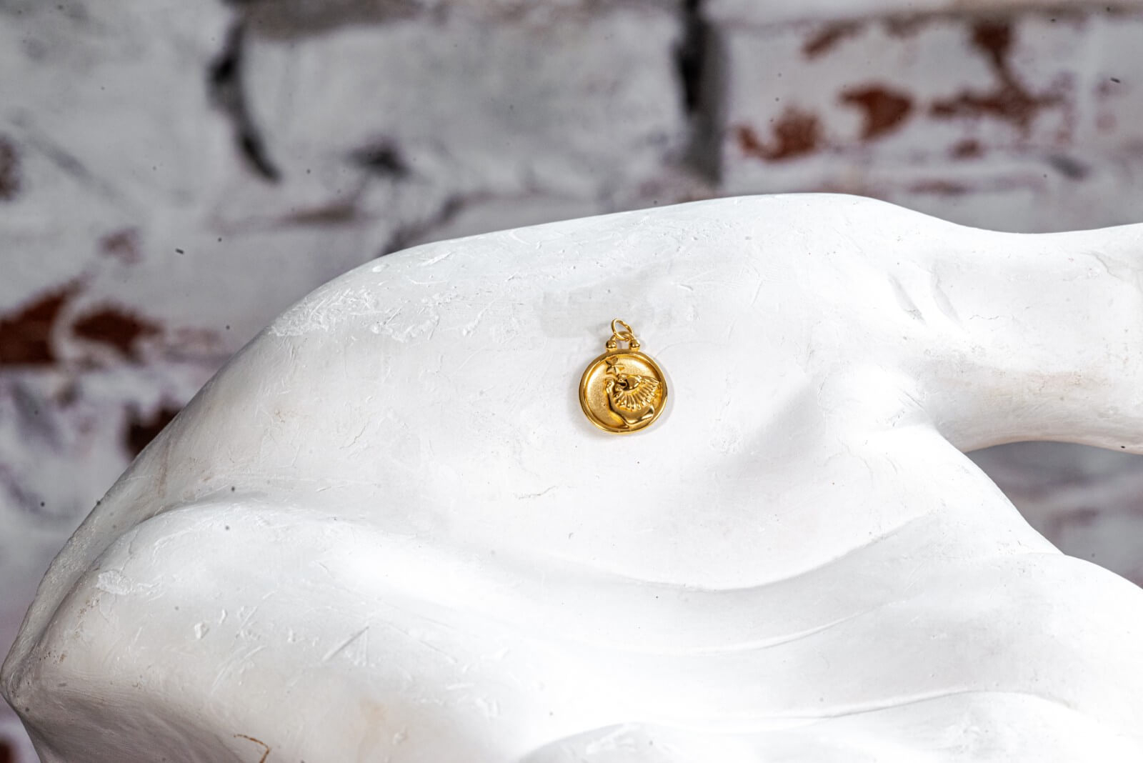 Pandantiv din otel inoxidabil placat cu aur Material: otel inoxidabil, zirconiu Placare: aur de 18K Dimensiune: 1.69 cm Greutate: 3.50 g