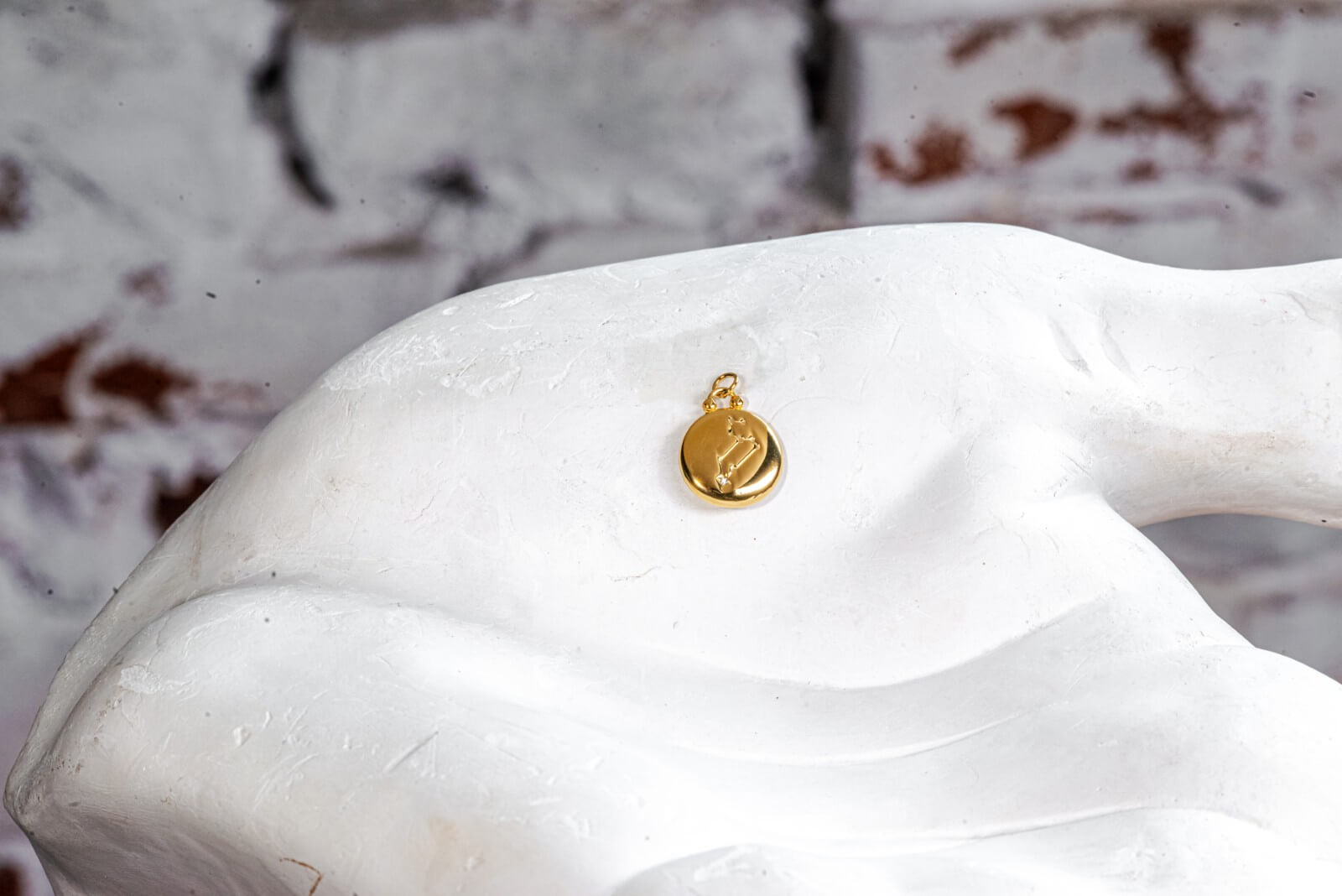 Un pandantiv zodiacal cu doua fete, realizat din otel inoxidabil. Pe o fata este reprezentat simbolul zodiei, iar pe cealalta fata se regaseste constelatia aferenta gravata si accesorizata cu cristale. Designul elegant si detaliile fine fac din acest pandantiv un accesoriu expresiv si personalizat. Suprafata metalului are un finisaj neted si stralucitor, oferind un efect sofisticat si durabil.