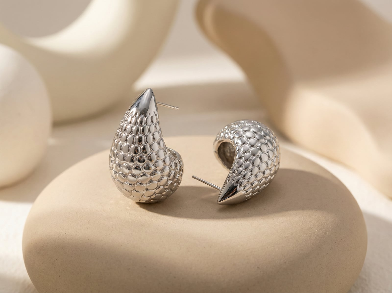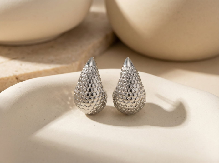 Cercei din otel inoxidabil placati cu argint