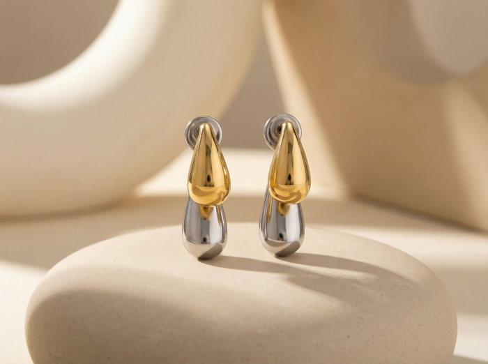 Cercei din otel inoxidabil placati cu aur/argint