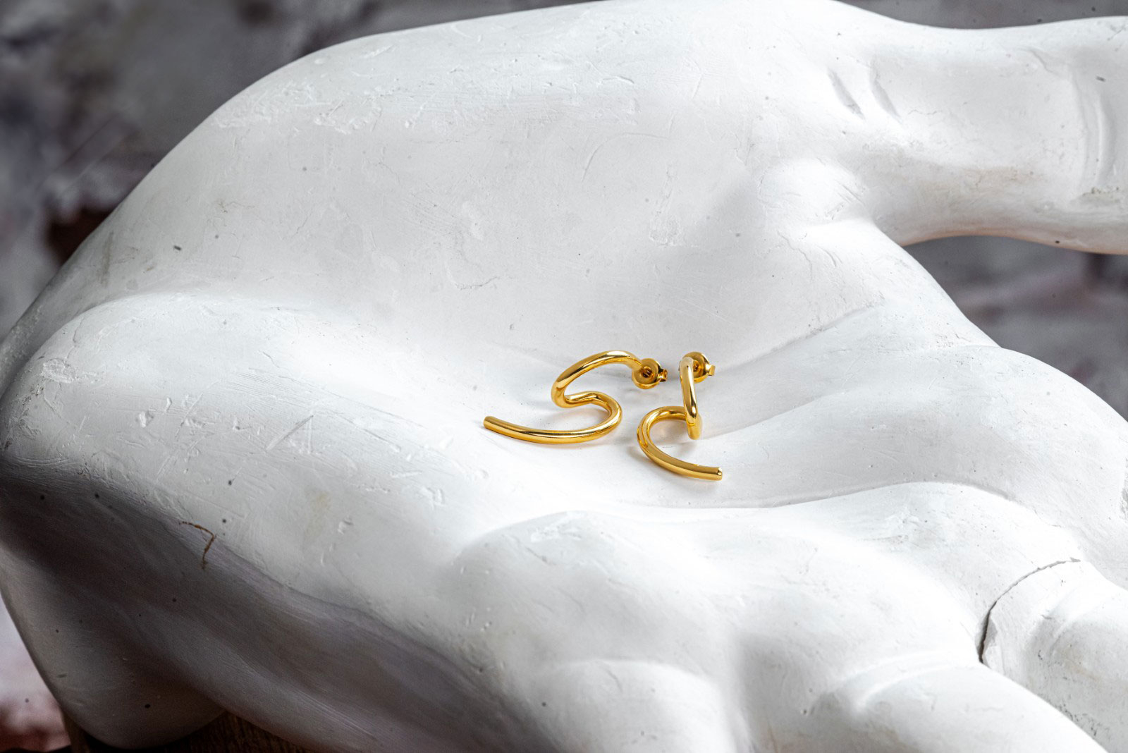 Cerceii spirala din otel inoxidabil placat cu aur sunt o declaratie de stil modern si minimalist. Designul lor fluid si voluminos contureaza lobul urechii cu o expresie jucausa, dar rafinata. Pot fi purtati atat ziua, cat si seara, adaugand un accent contemporan oricarei tinute.
