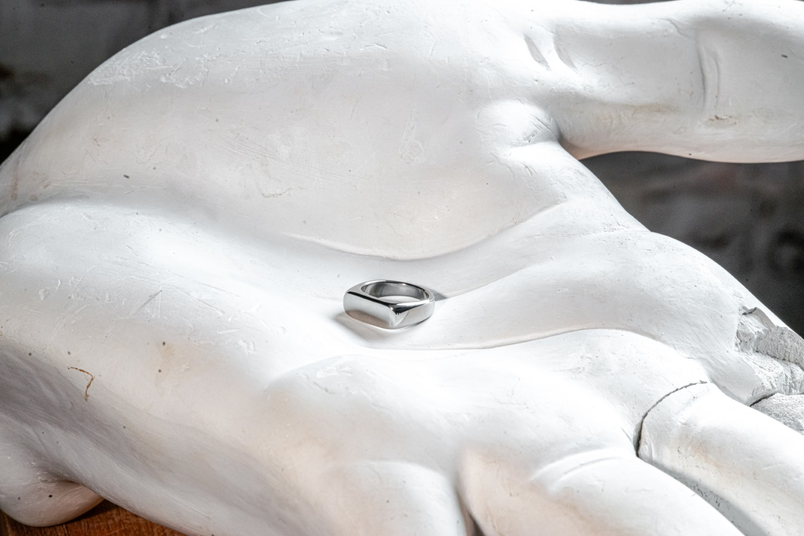 Un inel argintiu realizat din otel inoxidabil, cu un design contemporan si versatil. Suprafata neteda si finisajul metalic confera bijuteriei un aer rafinat, iar forma dreptunghiulara a detaliului frontal completeaza stilul modern al accesoriului.