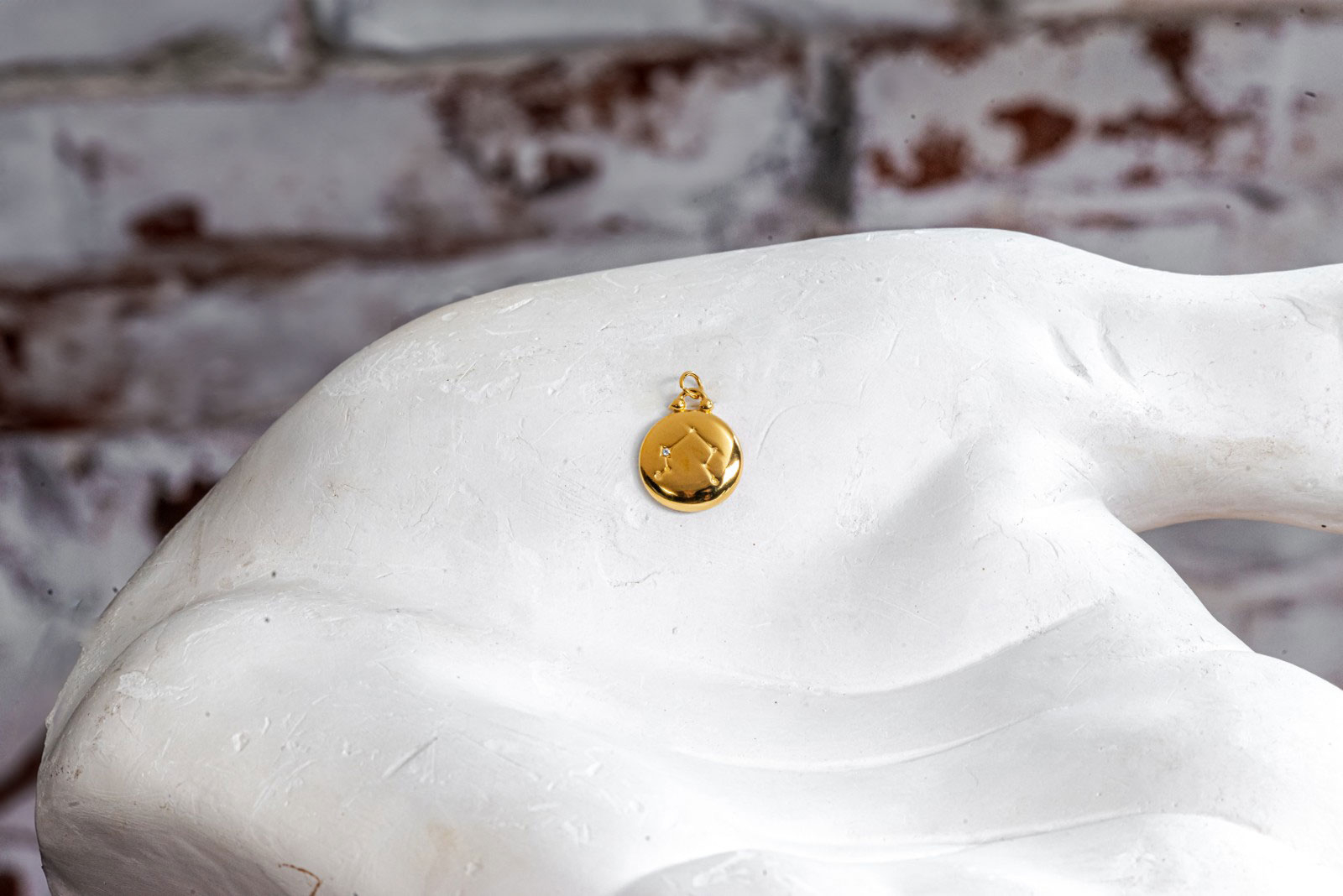 Un pandantiv zodiacal cu doua fete, realizat din otel inoxidabil. Pe o fata este reprezentat simbolul zodiei, iar pe cealalta fata se regaseste constelatia aferenta gravata si accesorizata cu cristale. Designul elegant si detaliile fine fac din acest pandantiv un accesoriu expresiv si personalizat. Suprafata metalului are un finisaj neted si stralucitor, oferind un efect sofisticat si durabil.