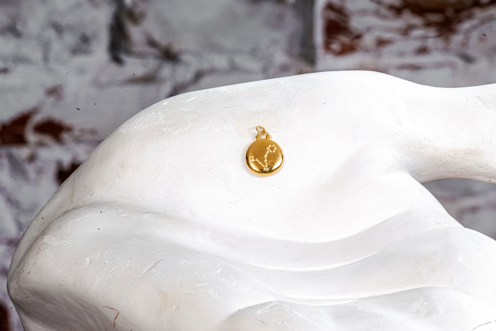 Un pandantiv zodiacal cu doua fete, realizat din otel inoxidabil. Pe o fata este reprezentat simbolul zodiei, iar pe cealalta fata se regaseste constelatia aferenta gravata si accesorizata cu cristale. Designul elegant si detaliile fine fac din acest pandantiv un accesoriu expresiv si personalizat. Suprafata metalului are un finisaj neted si stralucitor, oferind un efect sofisticat si durabil.